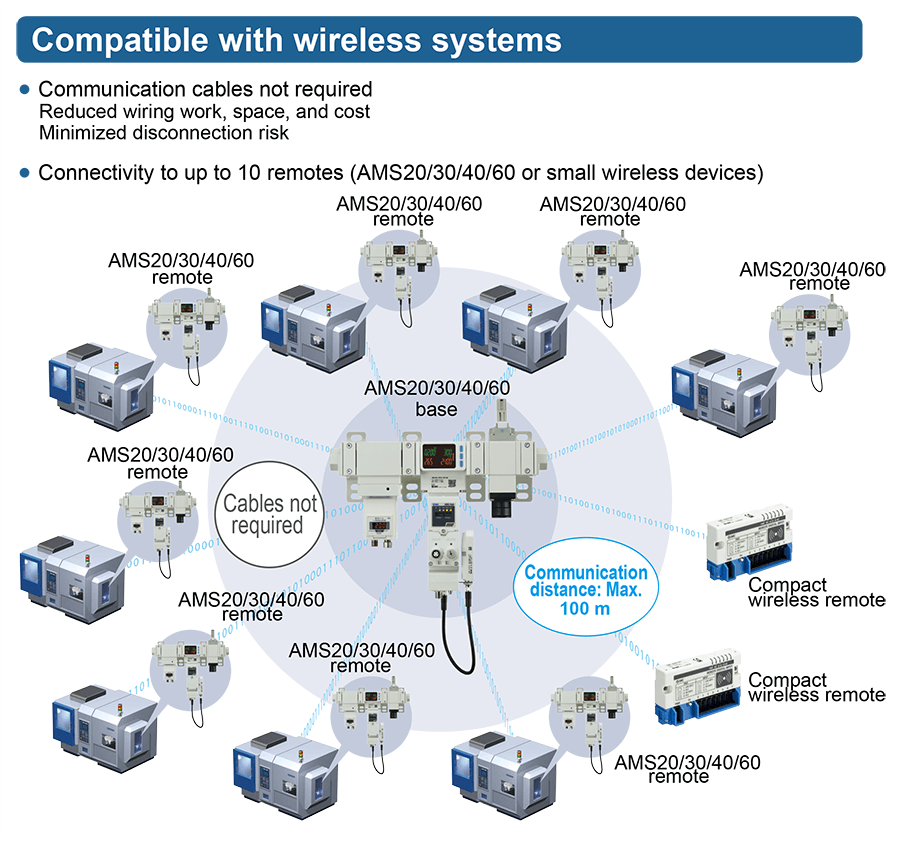 - Air de qualité ISO réalisable avec la préparation d'air modulaire AC-D de SMC.