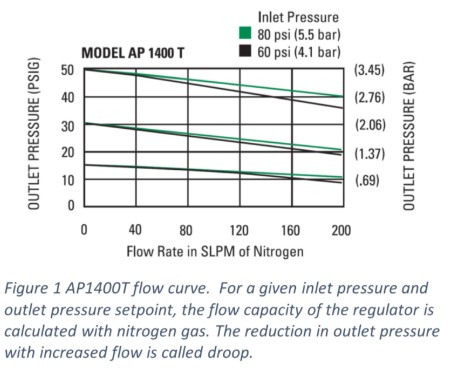 How can I get flow curves? AP Tech will provide you with a custom flow curve per request. Please inquire with your local AP Tech distributor or directly with the factory. Information needed is model, fitting size, gas type, maximum and minimum inlet pressure, and outlet pressure setpoint. Very limited flow curves are also on data sheets.